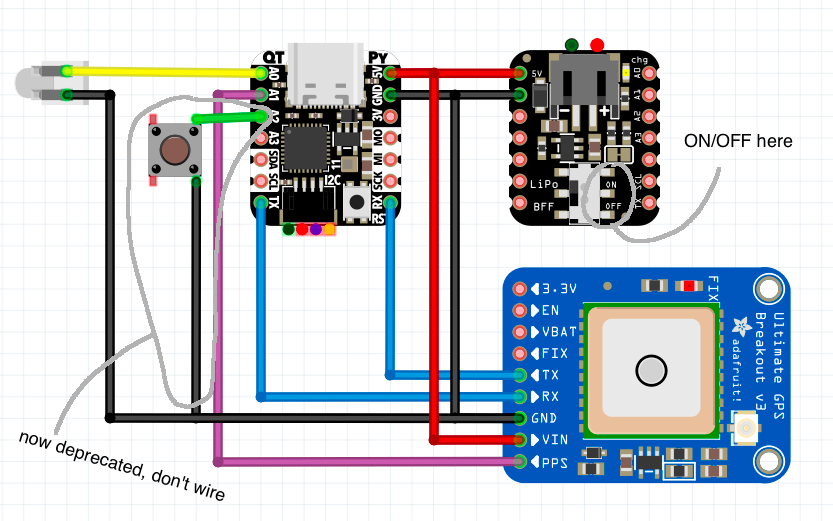 Here’s a more complex set up, adding a lipo charger, see (Adafruit boards):
